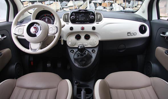 Στο εσωτερικό του ανανεωμένου Fiat 500 υπάρχουν πολλές αλλαγές, όπως είναι ο νέος ψηφιακός πίνακας οργάνων, το σύγχρονο σύστημα πολυμέσων U-Connect, το νέο ντουλαπάκι συνοδηγού, οι νέες ταπετσαρίες και οι αλλαγμένοι διακόπτες για τα ηλεκτρικά παράθυρα. Ποιοτικά στα σκληρά πλαστικά που έχουν χρησιμοποιηθεί δείχνουν συμπαγή και έχουν καλή συναρμογή, ενώ ιδιαίτερα παράπονα για την θέση οδήγησης και την εργονομία δεν υπάρχουν. Όσον αφορά στους χώρους, ο οδηγός και ο συνεπιβάτης δεν θα αντιμετωπίσουν κάποιο πρόβλημα (εκτός από την φαρδιά κεντρική κονσόλα), όμως πίσω οι ανέσεις είναι περιορισμένες για τη μετακίνηση ενήλικων ατόμων. Ικανοποιητικός κρίνεται για τα δεδομένα της κατηγορίας ο αποθηκευτικός χώρος των 185 λίτρων.