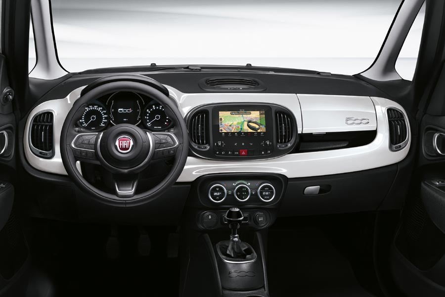 Περνώντας στο εσωτερικό, εκεί η Fiat εφοδιάζει το 500L με ένα νέο πίνακα οργάνων με λευκό φωτισμό και 3,5 ιντσών οθόνη για το tripcomputer, ενώ παράλληλα υπάρχει έναν επανασχεδιασμένο τιμόνι, καινούργιος επιλογέας ταχυτήτων και νέο ντουλαπάκι συνοδηγού.
