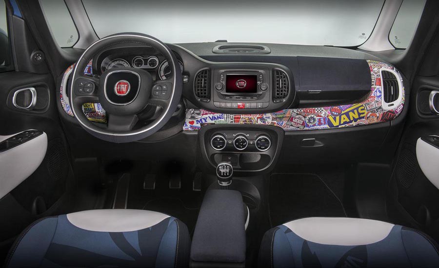 Στο εσωτερικό του Fiat 500L Vans concept υπάρχουν ένθετα στο ταμπλό με σχέδια της Vans, όπως επίσης και στις επενδύσεις των καθισμάτων, ενώ τα πεντάλ και το υποπόδιο φέρουν λαστιχένια τμήματα που χρησιμοποιούνται στις σόλες των παπουτσιών της Vans. Μηχανικές αλλαγές δεν υπάρχουν και το συγκεκριμένο μοντέλο τροφοδοτείται με τον 1.4 λίτρων MultiAir Turbo των 160 ίππων.