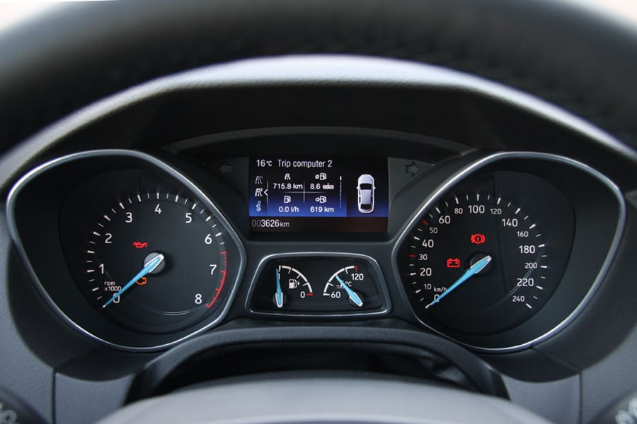 Κάτω από το καπό του Ford Focus ST-Line της δοκιμής μας βρίσκεται ο 3κύλινδρος 1.000άρης turbo EcoBoost κινητήρας βενζίνης της Ford, ο οποίος έχει βραβευθεί για 5 συνεχείς χρονιές (2012, 2013, 2014, 2015 και 2016) ως ο παγκοσμίως Καλύτερος Κινητήρας της Χρονιάς στην κατηγορία του. Η ονομαστική του απόδοση είναι 125 ίπποι στις 6.000 στροφές και η μέγιστη ροπή του με overboost αγγίζει τα 170 Nm μόλις από τις 1.400 στροφές. Στην πράξη, ο κινητήρας αυτός αποδεικνύεται αρκετά πολιτισμένος με βάση την 3κύλινδρη υπόστασή του, προσφέροντας πολύ καλό τράβηγμα από χαμηλά και όντας ιδιαίτερα «ζωντανός» και πρόθυμος στο να ανεβάσει στροφές, με τη φυσιολογική κόπωση ενός μοτέρ των κυβικών του να εμφανίζεται στο υψηλότερο φάσμα λειτουργίας του. Στις επιδόσεις, το 0-100 χλμ./ώρα έρχεται σε 11,0 δευτερόλεπτα και είναι αρκετά σβέλτο, όχι όμως και από τα πιο γρήγορα της κατηγορίας. Σε ό,τι αφορά στο 6τάχυτο κιβώτιο, η κλιμάκωσή του είναι αρκετά καλή και συνολικά βοηθά ώστε να μην «πνίγονται» οι επιδόσεις και παράλληλα η κατανάλωση να βρίσκεται σε αρκετά λογικά επίπεδα, με τη μέση τιμή που είδαμε στη δοκιμή μας να είναι στα πολύ καλά 6,9 λτ./100 χλμ.