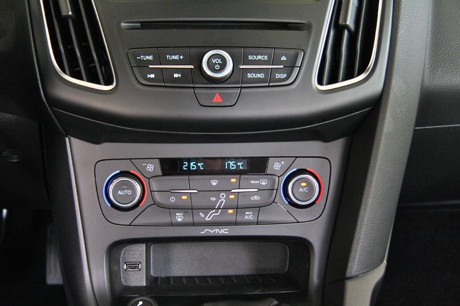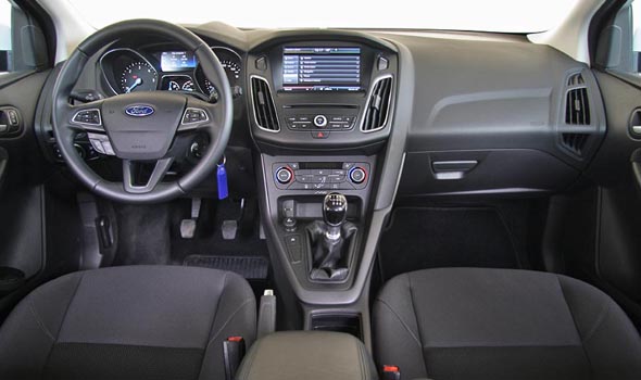 Όπως αναφέραμε παραπάνω, οι αλλαγές που έγιναν και στο εσωτερικό του ανανεωμένου Ford Focus είναι αρκετές, με στόχο κυρίως τη βελτίωση της εργονομίας και την τεχνολογική αναβάθμιση. Πλήρως αλλαγμένη είναι η πολύ πλατιά κεντρική κονσόλα, όπου φιλοξενούνται χαμηλά τα νέα χειριστήρια του κλιματισμού και στο πάνω βρίσκεται το σύστημα πολυμέσων SYNC 2 με έγχρωμη οθόνη αφής 8 ιντσών (4,2 ιντσών στη βασική έκδοση Trend) και πολύ λιγότερα χειριστήρια από πριν. Ο χειρισμός του μενού γίνεται εύκολα αφού μάθει ο οδηγός τις βασικές της λειτουργίες, μόνο που η οθόνη είναι σχετικά απομακρυσμένη από τον οδηγό. Νέας σχεδίασης είναι και το τιμόνι, ενώ το χειρόφρενο μεταφέρθηκε πιο πίσω. Από πλευράς ποιότητας, κυριαρχεί το παχύ αφρώδες πλαστικό που καλύπτει ολόκληρο σχεδόν το ταμπλό μέχρι χαμηλά. Προσεγμένο είναι το φινίρισμα και η συναρμογή, ωστόσο σε κάποια λιγότερο ορατά σημεία εντοπίζονται μικροατέλειες. Στο κομμάτι των χώρων, 4 ενήλικες επιβάτες θα βρουν θέση στο εσωτερικό του αυτοκινήτου χωρίς να αντιμετωπίσουν προβλήματα, αν και κάποιος θα περίμενε περισσότερες ανέσεις από ένα μικρομεσαίο μήκους 4.358 χλστ. Το ίδιο ισχύει και για το πορτ μπαγκάζ, το οποίο με την κανονική ρεζέρβα ή με ανάγκης είναι μικρό (277 λτ. και 316 λτ. αντίστοιχα) και με κιτ επισκευής ελαστικού μεγαλώνει στα 363 λτ.