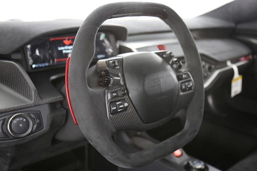 Το εσωτερικό του Ford GT Competition Series είναι σπαρτιάτικο… καθώς απουσιάζουν το σύστημα κλιματισμού, το σύστημα πολυμέσων οι θήκες και οι ποτηροθήκες, καθώς ήταν περιττό βάρος. Κάποιες ενθέσεις χρωμίου, αλκαντάρα και κόκκινες λεπτομέρειες φροντίζουν να δίνουν τον τόνο.