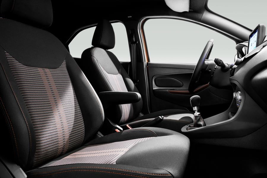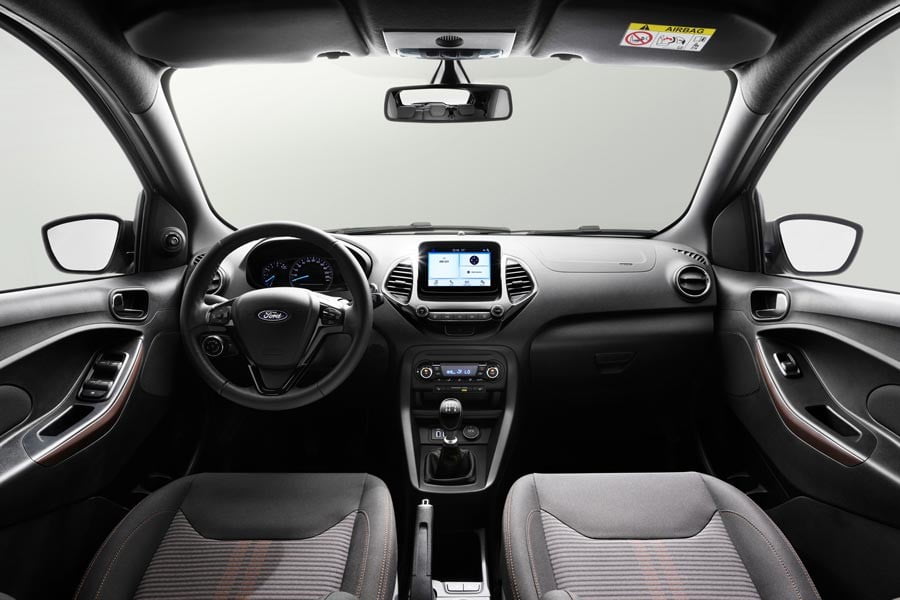 Στο εσωτερικό του KA+ Active υπάρχουν διακοσμητικά στα μαρσπιέ με την αναγραφή «Active», δερμάτινο τιμόνι με καφέ ραφές, ειδικά πατάκια για προστασία από τη λάσπη και νέες υφασμάτινες επενδύσεις.