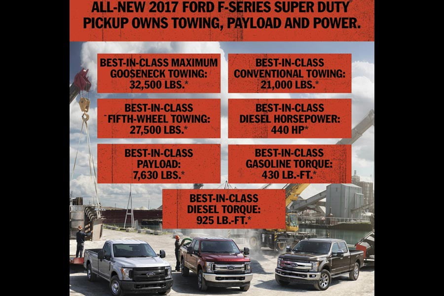 Αναμενόμενα οι δυνατότητες ρυμούλκησης της νέας σειράς των κορυφαίων pick-up της Ford είναι ιδιαίτερα εντυπωσιακές, αφού στην έκδοση F-450 SuperCrew 4X4, το αμερικάνικο μοντέλο μπορεί να ρυμουλκήσει ούτε λίγο, ούτε πολύ ένα τρέιλερ βάρους έως και 14,7 τόνων! Φυσικά, πρόκειται για ρεκόρ στην κατηγορία των pick-up.