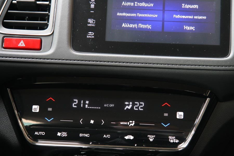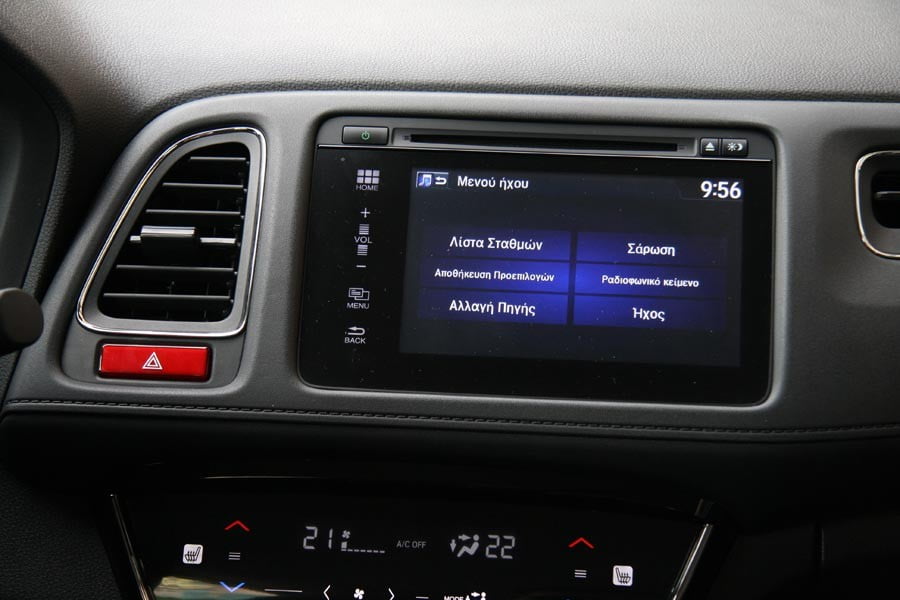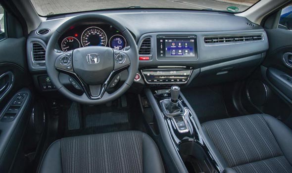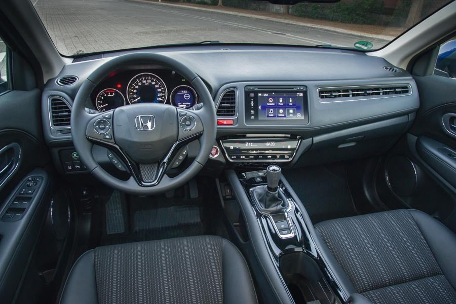 Θετική είναι συνολικά η εικόνα που λαμβάνει κανείς από το εσωτερικό του νέου HR-V, το οποίο παρουσιάζει μοντέρνα αισθητική, είναι καλοφτιαγμένο και προσφέρει ιδιαίτερα άνετους χώρους για επιβάτες και αποσκευές. Στην κονσόλα κυριαρχεί η οθόνη των 7 ιντσών του συστήματος πολυμέσων Honda Connect (δεν περιλαμβάνεται στην αρχική έκδοση Comfort). Πιο κάτω συναντάται το σύγχρονο πάνελ του συστήματος κλιματισμού με τα χειριστήρια αφής. Ο οδηγός κάθεται σωστά και βρίσκει γρήγορα την κατάλληλη θέση οδήγησης μέσω των πολλαπλών ρυθμίσεων του τιμονιού και του καθίσματος. Ο πίνακας οργάνων με τα τρία στρογγυλά στοιχεία είναι ευανάγνωστος, ενώ στο δεξί όργανο αναγράφονται όλες οι ενδείξεις του trip computer. Στον τομέα της ποιότητας, έχει γίνει ευρεία χρήση σκληρών πλαστικών στο ταμπλό, τα οποία δείχνουν στιβαρά και η συναρμογή τους είναι προσεγμένη, όπως και το φινίρισμα. Μαλακή επένδυση συναντάται σε μικρές επιφάνειες στο εμπρός τμήμα, ωστόσο δεδομένων των υψηλών τιμών του αυτοκινήτου, κάποιοι ίσως θα ήθελαν πιο ποιοτικά υλικά.