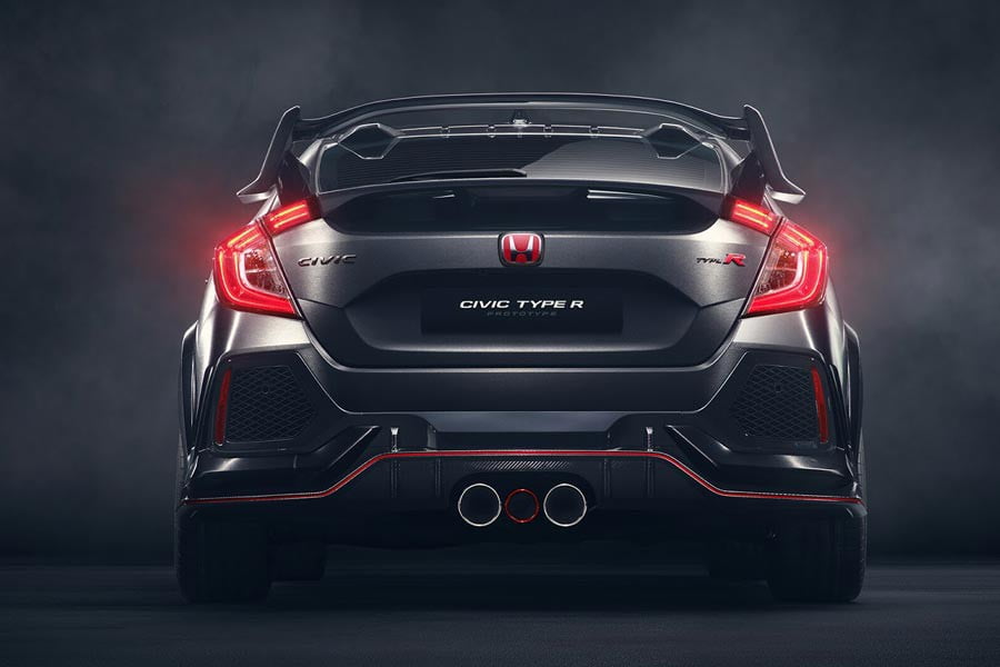 Βασισμένο στο νέο Civic χάτσμπακ, το Type R Prototype ξεχωρίζει για τον άκρως επιθετικό του σχεδιασμό και τη μυώδη εμφάνισή του. Στο εμπρός άκρο του το βλέμμα εστιάζει στον προφυλακτήρα με τους μεγάλους αεραγωγούς, στο σπόιλερ από ανθρακόνημα και στην κόκκινη ρίγα που επεκτείνεται περιμετρικά του αμαξώματος, ενώ πιο σπορ νότα δίνουν οι αεραγωγοί πάνω από τη μάσκα και στο καπό.