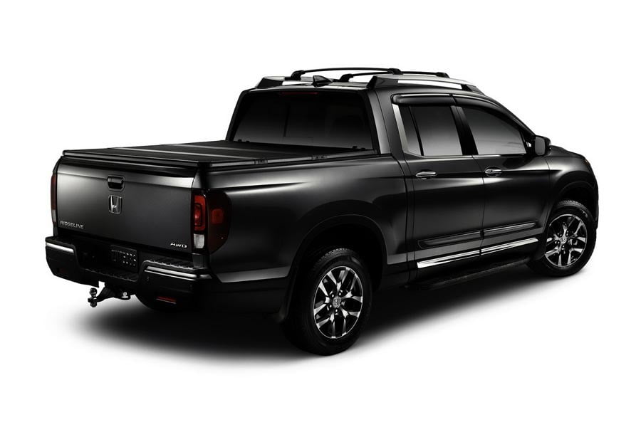Ιδιαίτερο ενδιαφέρον συγκεντρώνει και το Ridgeline Black Edition με τη μαύρη περλέ μεμβράνη, τις κόκκινες λεπτομέρειες, τις μαύρες ζάντες των 22 ιντσών και τη μοτοσικλέτα CB500F τοποθετημένη στον χώρο φόρτωσης.