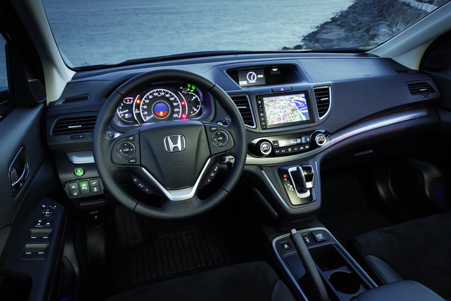 Στο εσωτερικό του ανανεωμένου CR-V υπάρχει νέα χρωμιωμένη επένδυση στο ταμπλό, νέας τεχνολογίας σύστημα infotainment με οθόνη αφής 7 ιντσών, με Bluetooth, κάμερα οπισθοπορείας, τεχνολογία MirrorLink, σύστημα πλοήγησης, internet radio, πολλές πληροφορίες του trip computer κ.λπ.