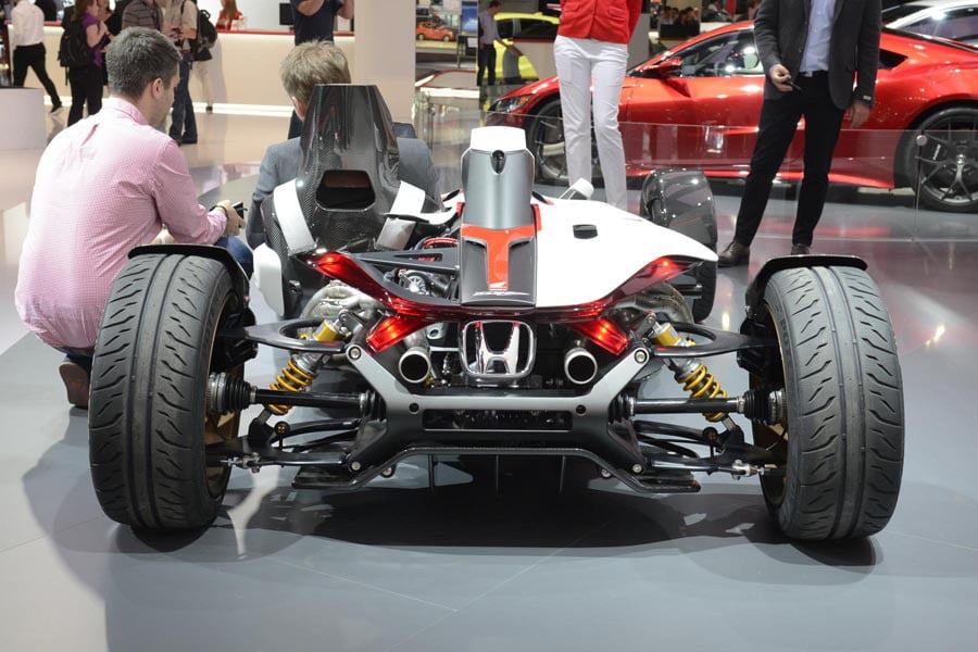 Η σχεδίαση αμαξώματος και η θέση του κινητήρα είναι εμπνευσμένα από το θρυλικό μονοθέσιο Honda RA272 του 1965. Η δομή αποκαλύπτει το βασικό πλαίσιο και λειτουργικά εξαρτήματα του οχήματος, κάτι συνηθισμένο για μοτοσικλέτα και παράλληλα είναι συμπαγής. Το συνολικό μήκος είναι 3.040 χλστ., το πλάτος 1.820 χλστ. και το ύψος 995 χλστ. Το βάρος των 405 κιλών μεγιστοποιεί τις επιδόσεις του κεντρικά τοποθετημένου κινητήρα, που μαζί με το χαμηλό κέντρο βάρους διασφαλίζει ένα υψηλό επίπεδο απόκρισης.