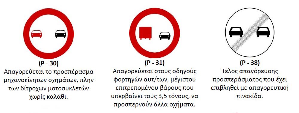 Απαγορεύεται να γίνει προσπέραση όταν το προπορευόμενο όχημα έχει βγει για προσπέραση, όταν δεν υπάρχει ορατότητα, σε διπλή γραμμή, σε σιδηροδρομικές διαβάσεις και μέσα στις σήραγγες με μία λωρίδα κυκλοφορίας ανά κατεύθυνση. Επίσης δεν προσπερνάμε όταν σχολικό λεωφορείο έχει σταματήσει σε οδόστρωμα με μία ή δύο λωρίδες κυκλοφορίας.