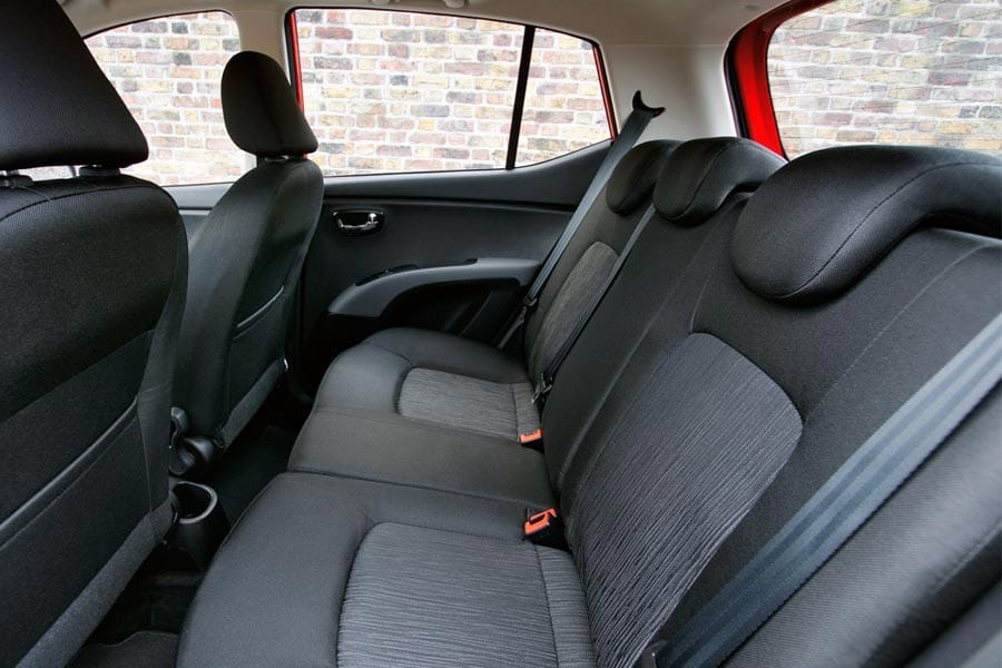 Μπορεί το εσωτερικό του i10 να μην ξεχειλίζει από σχεδιαστικές καινοτομίες και πρωτότυπες ιδέες, καταφέρνει όμως να συνδυάζει προσεγμένη ποιότητα υλικών, αρκετά καλό φινίρισμα και ευχάριστο design. Aκόμα πιο «ζωηρές» παρουσιάζονται και οι εκδόσεις με τη διακριτική διχρωμία στο ταμπλό, στις οποίες το αισθητικό αποτέλεσμα είναι ακόμα πιο μοντέρνο. Παράλληλα οι χώροι είναι ένα από τα δυνατά σημεία του i10. Στο πίσω κάθισμα ενήλικες κανονικού αναστήματος δε θα δυσκολευτούν να ταξιδέψουν, χωρίς βέβαια αυτό να σημαίνει ότι αν είναι πολύ ψηλοί δεν θα περιοριστούν λίγο στα γόνατα. Σε ότι έχει να κάνει με το χώρο αποσκευών, αυτός έχει αρκετά μεγάλο διαθέσιμο όγκο 225 λίτρων και εκμεταλλεύσιμο σχήμα.