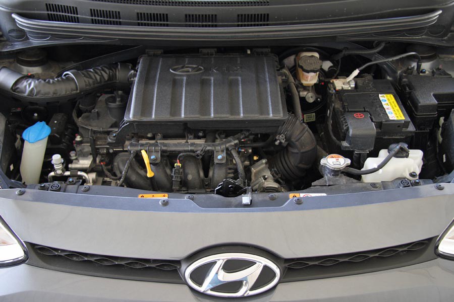 Στα ατού του νέου i10 αποτελεί ο βελτιωμένος κινητήρας σειράς Kappa των 1.2 λτ. απόδοσης 87 ίππων με το διπλό συνεχώς μεταβλητό χρονισμό των βαλβίδων (CVVT), ο οποίος είναι ελαστικός και με ιδιαίτερη «ζωντάνια». Από τις πολύ χαμηλές στροφές το μηχανικό αυτό σύνολο παρουσιάζει θετικό τράβηγμα και αποδίδει μέχρι τις υψηλότερες στροφές, επιταχύνοντας γρήγορα το μίνι αυτοκίνητο τόσο από στάση όσο και εν κινήσει. Ο θόρυβος του κινητήρα θα γίνει έντονα αισθητός μόνο πάνω από τις 4.000 σ.α.λ. περίπου, ωστόσο η μακριά 5η ταχύτητα φροντίζει να διατηρούνται χαμηλά οι στροφές του κινητήρα σε ταχύτητες ταξιδιού (γύρω στις 3.500 σ.α.λ. στα 130 χλμ./ώρα). Στα «συν» ο πολύ καλός σε αίσθηση επιλογέας των ταχυτήτων με τις κοντές διαδρομές, το εύκολο «κούμπωμα» και την βολική θέση. Στα «μείον» η σχετικά αυξημένη κατανάλωση που κυμαίνεται στα 6,5 λτ./100 χλμ. σε πραγματικές συνθήκες και είναι υψηλότερη από ανταγωνιστικών μοντέλων βενζίνης και ακόμα περισσότερο από ντίζελ. Επίσης δεν απαλλάσσεται από τα τέλη κυκλοφορίας (εκπομπές CO2 στα 114 γρ./χλμ.), όπως ισχύει σε άλλα αυτοκίνητα της ίδιας κατηγορίας και παραπλήσιας ισχύος.