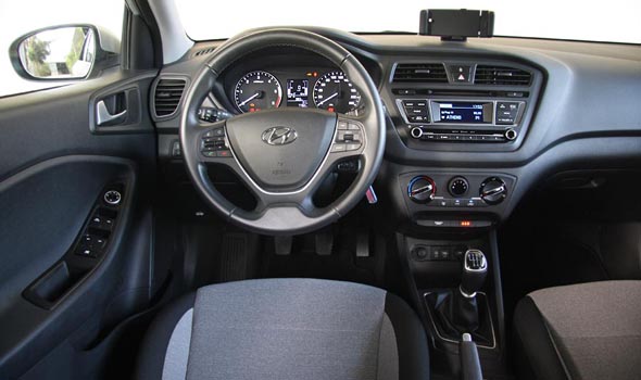 Σημαντικά βελτιωμένο είναι και το εσωτερικό του νέου Hyundai i20 σε κάθε τομέα. Σχεδιαστικά παρουσιάζεται πιο μοντέρνο και ελκυστικό, με προσεγμένη εργονομία των επιμέρους χειριστηρίων, σημαντικά καλύτερη θέση οδήγησης με πολλαπλές ρυθμίσεις στο τιμόνι και στο αναπαυτικό κάθισμα. Σε επίπεδο κατασκευής αποπνέει στιβαρότητα και δείχνει προσεγμένο ως σύνολο. Για πρώτη φορά σε μικρό Hyundai έγινε χρήση λεπτού μαλακού υλικού στο ταμπλό, το οποίο ωστόσο δεν φτάνει τα επίπεδα ανταγωνιστικών μοντέλων (Fiesta, Polo, Corsa) με το παχύ αφρώδες πλαστικό. Μόνο στις πόρτες θα θέλαμε να υπήρχε και ύφασμα ειδικά στο υποβραχιόνιο, αντί του σκληρού πλαστικού. Μεταξύ των σημαντικών πλεονεκτημάτων που προσφέρει το νέο i20 είναι οι άνετοι χώροι για τους επιβάτες και τις αποσκευές. Τόσο στο εμπρός όσο και στο πίσω μέρος της καμπίνας ενήλικα άτομα θα φιλοξενηθούν με άνεση, ενώ ο χώρος αποσκευών με το διπλό δάπεδο έχει χωρητικότητα 326 λίτρων (από 295 λτ.).