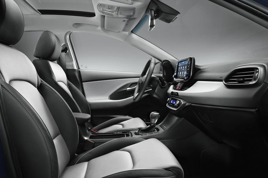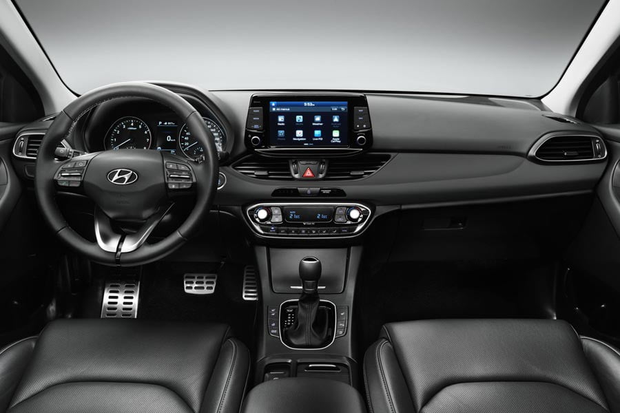Εντελώς νέο και λιγότερο «φλύαρο» είναι το εσωτερικό του νέου i30 με ίσιες γραμμές και μινιμάλ αισθητική. Για πρώτη φορά τοποθετείται στο πάνω μέρος η -προαιρετική- οθόνη των 8 ιντσών του συστήματος πολυμέσων. Επίσης, το νέο i30 προσφέρει άνετους χώρους για τους επιβάτες και μεγαλύτερο κατά 17 λίτρα χώρο αποσκευών (395 λτ.).