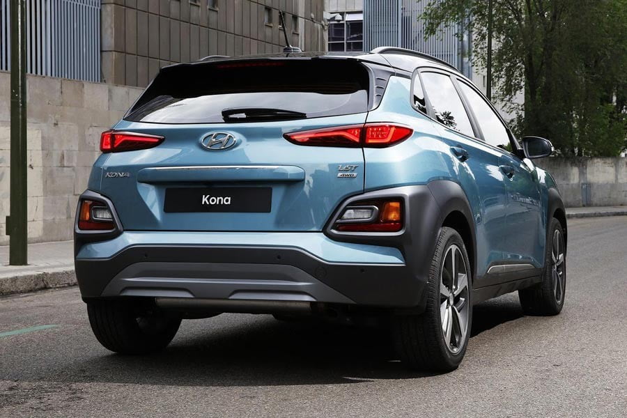 Στο πίσω μέρος ξεχωρίζουν τα επίσης LED και στενόμακρα φώτα, που χαρακτηρίζουν το αυτοκίνητο, ενώ υπάρχει και μια αλουμινένια «ποδιά» στον προφυλακτήρα που δίνει μια off road πινελιά. Στα στοιχεία του Kona ξεχωρίζουν και η διαφορετικού χρώματος οροφή, αλλά και τα πλαστικά προστατευτικά στους θόλους των τροχών.