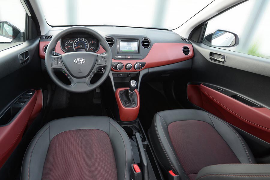 Στο εσωτερικό οι κόκκινες επενδύσεις και τα καθίσματα με δέρμα – ύφασμα χαρίζουν στο i10 Sport πιο ξεχωριστή εμφάνιση, ενώ εξοπλίζεται με Bluetooth και hands-free, CD player με υποδοχές USB/AUX, συναγερμό, θερμαινόμενο τιμόνι, σύστημα πλοήγησης κ.α.
