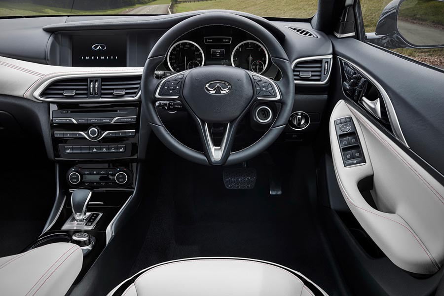 Τα περισσότερα επιμέρους χειριστήρια, όπως είναι για τα ηλεκτρικά παράθυρα, στο τιμόνι, στην κεντρική κονσόλα, ο πίνακας οργάνων και η θέση για το κλειδί προέρχονται από τη μικρομεσαία Mercedes. Άλλωστε και η πλατφόρμα του Infiniti Q30 βασίζεται σε εκείνη της A-Class. Παράλληλα, οι θέσεις του οδηγού και των επιβατών έχουν κατασκευαστεί για να παρέχουν βελτιωμένη άνεση και στήριξη, βοηθώντας στον καλύτερο έλεγχο του αυτοκινήτου.