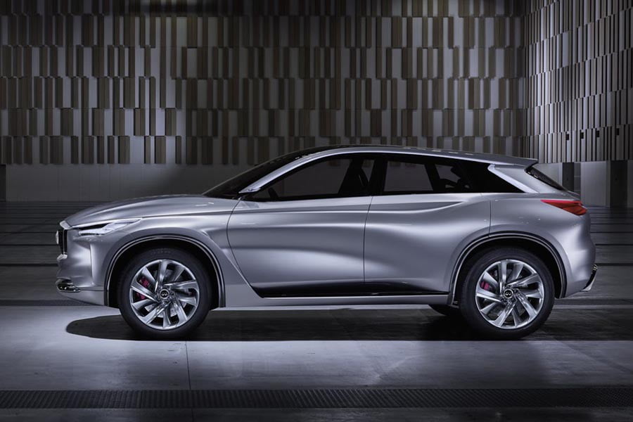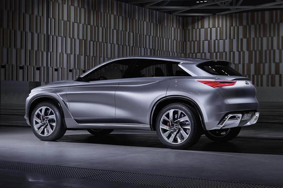 Σχεδιαστικά, οι γραμμές του πρωτότυπου έχουν επηρεαστεί από τη νεότερη σχεδιαστική φιλοσοφία «Δυναμική Κομψότητα» της Infiniti, σε ένα αποτέλεσμα αρκετά ελκυστικό. Έχουμε λοιπόν ένα υπερυψωμένο αμάξωμα με αρκετές καμπύλες, γλυπτά σχήματα, αλλά και μακρόστενα φωτιστικά σώματα που εκφράζουν δυναμισμό. Στο εμπρόσθιο τμήμα, ξεχωρίζει η μεγάλη γρίλια της μάσκας που περιβάλλεται από χρώμιο, στο πλάι οι γυάλινες επιφάνειες έχουν μικρό εμβαδόν, ενώ πίσω διακρίνονται οι πεπλατυσμένες διπλές απολήξεις της εξάτμισης.
