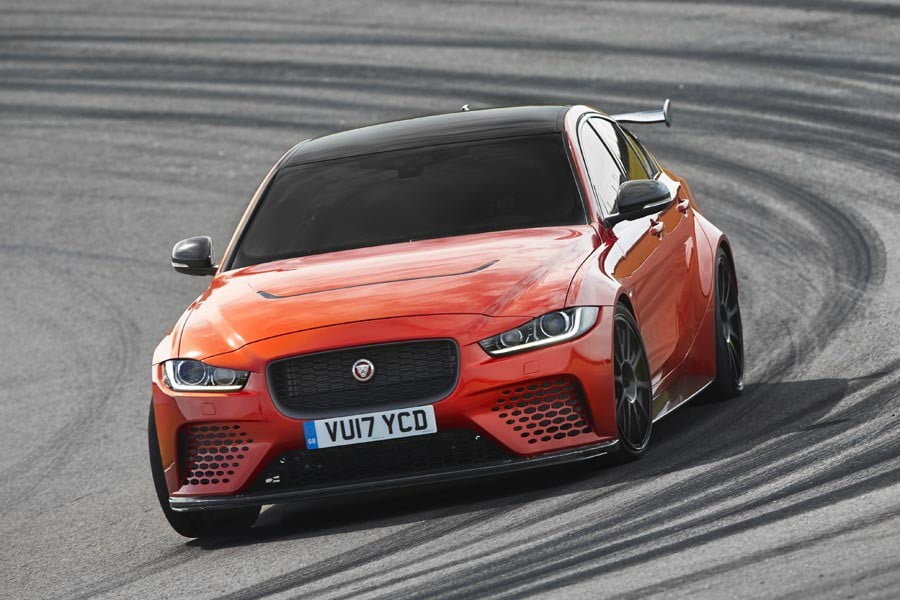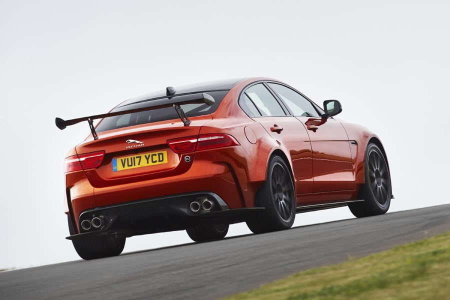 Σχεδιαστικά, το γνωστό αμάξωμα της Jaguar XE έχει ενισχυθεί με carbon εμπρόσθιο προφυλακτήρα, ανθρακονημάτινο καπό, ενεργό εμπρόσθιο σπόιλερ, επίσης carbon πίσω προφυλακτήρα με νέο διαχύτη, αλλά και ρυθμιζόμενη πίσω αεροτομή. Άλλα στοιχεία που ξεχωρίζουν είναι οι σφυρήλατες 20άρες ζάντες και το εντελώς επίπεδο πάτωμα.