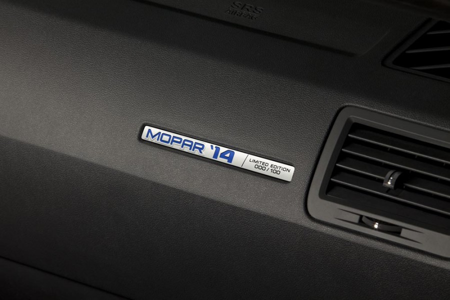 Σε μία μόλις μέρα πουλήθηκαν και τα 100 Dodge Challenger Mopar ‘14, μεταξύ των οποίων τα 52 σε μαύρο χρώμα και τα υπόλοιπα 48 σε λευκό. Το βελτιωμένο από την Dodge muscle car Challenger εφοδιάζεται με αυτοκόλλητες ταινίες εξωτερικά της Mopar, με μαύρες αλουμινένιες ζάντες 20 ιντσών, με μαύρη εισαγωγή στο καπό και με ίδιου χρώματος τάπα καυσίμου και αεροτομή στο πίσω καπό. Στο εσωτερικό το Dodge Challenger Mopar εφοδιάζεται με μαύρα δερμάτινα καθίσματα με μπλε ραφές, ενώ στο ταμπλό υπάρχει η αριθμημένη πλακέτα. Τέλος, την κίνησή του αναλαμβάνει ο V8 Hemi των 5.7 λίτρων απόδοσης 375 ίππων και 542 Nm ροπής.