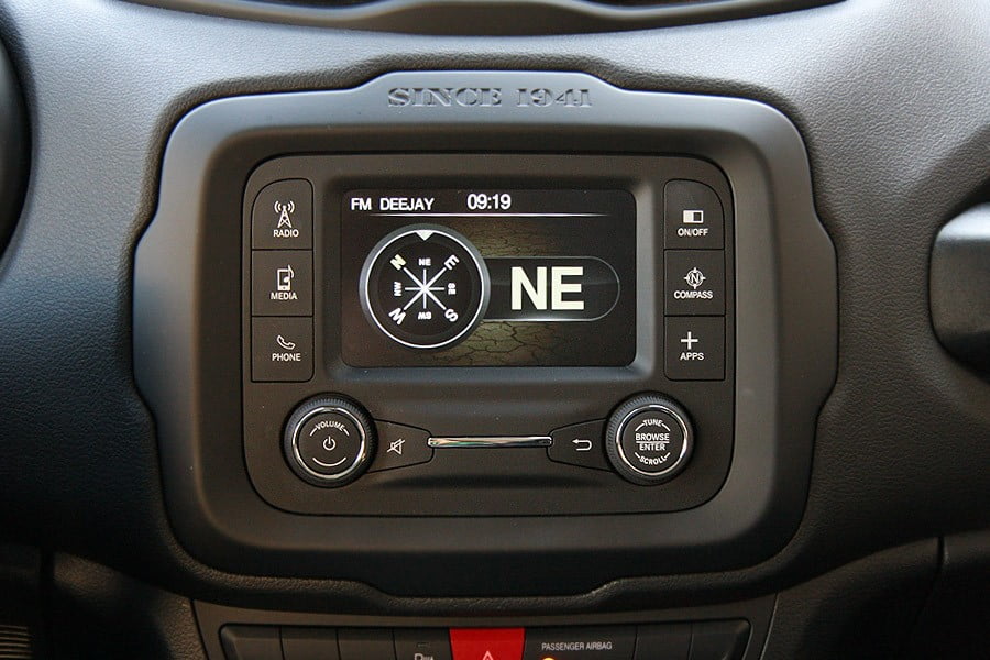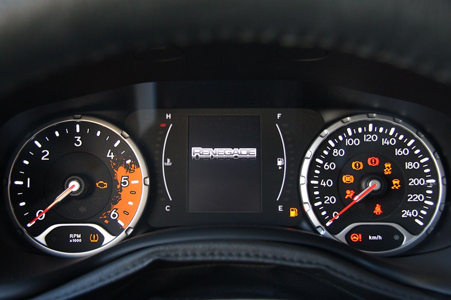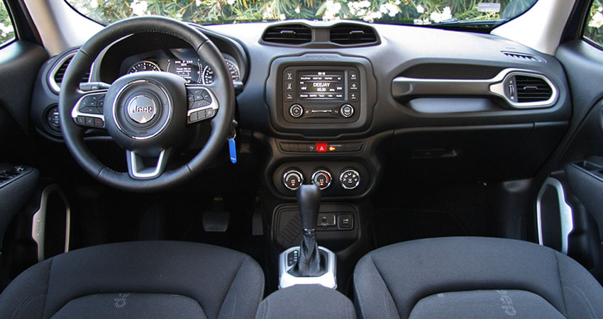 Όπως το αμάξωμα, έτσι και το εσωτερικό του Renegade διαθέτει ξεχωριστά σχεδιαστικά γνωρίσματα που ενισχύουν τον εκτός δρόμου χαρακτήρα του και την παράδοση της Jeep. Η ποιότητα κατασκευής βρίσκεται σε καλά επίπεδα και το ταμπλό είναι κατασκευασμένο στο μεγαλύτερο μέρος του από παχύ αφρώδες υλικό, ενώ η συναρμογή είναι προσεγμένη και δεν παρατηρούνται τριγμοί. Η θέση οδήγησης είναι ψηλά τοποθετημένη και ο οδηγός κάθεται άνετα, ωστόσο την ορατότητα περιορίζουν εν μέρει οι παχιές εμπρός κολόνες και οι μεγάλες πίσω. Οι διαθέσιμοι χώροι του Jeep Renegade είναι άνετοι για 4 επιβάτες χωρίς εκείνοι να συναντήσουν προβλήματα συν έναν ακόμα με κάποιες παραχωρήσεις στο πίσω κάθισμα, ενώ ο χώρος αποσκευών των 351 λίτρων είναι βαθύς, με τετραγωνισμένο σχήμα και μεγάλο άνοιγμα.