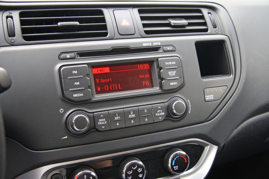 Όπως εξωτερικά έτσι και στο εσωτερικό το Kia Rio παρουσιάζει σύγχρονη και ελκυστική σχεδίαση με στιβαρή συναρμογή, πολύ καλή εργονομία και θέση οδήγησης με πολλαπλές ρυθμίσεις στο κάθισμα του οδηγού και στο τιμόνι. Ποιοτικά, έχει γίνει ευρεία χρήση σκληρών πλαστικών τόσο στο ταμπλό όσο και στις πόρτες, στις οποίες η έλλειψη υφασμάτινων επενδύσεων και ο σκουρόχρωμος διάκοσμος κάνουν το εσωτερικό να δείχνει κάπως μουντό, παρά τις ασημί προσθήκες σε τιμόνι, κονσόλα και βάση του επιλογέα ταχυτήτων που «σπάνε» κάπως τη χρωματική μονοτονία.