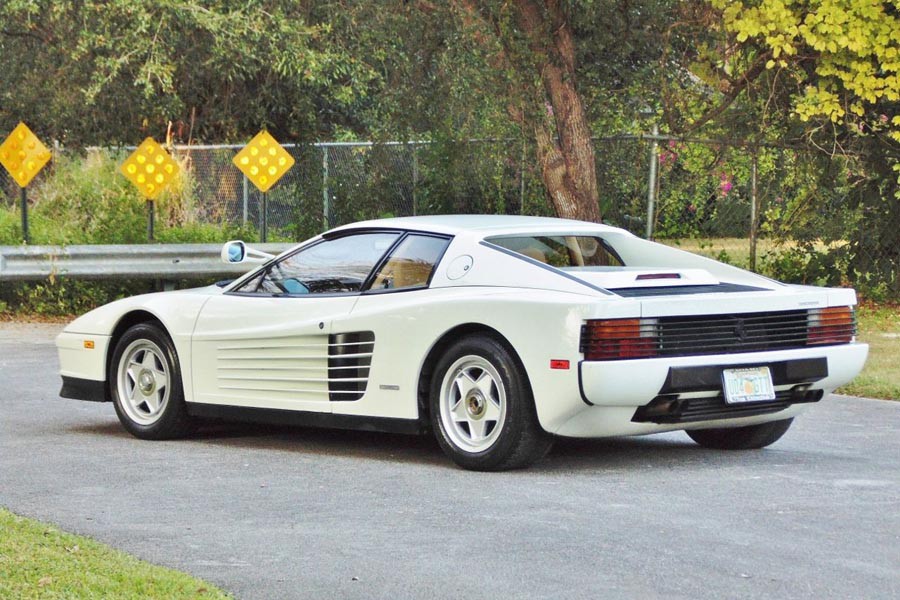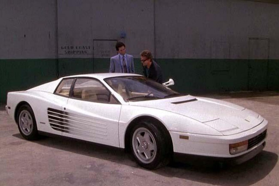 Μία από τις πιο δημοφιλείς σειρές της δεκαετίας του ’80 ήταν και η Miami Vice, με βασικό πρωταγωνιστή τον Don Johnson αλλά και τις Ferrari Daytona και Testarossa. Οι Daytona μπορεί να ήταν ρεπλίκες βασισμένες στην Corvette C3, ωστόσο οι δύο Testarossa που χρησιμοποιήθηκαν στα γυρίσματα της σειράς ήταν πραγματικές. Μία από αυτές υπάρχει μέχρι σήμερα, είναι μοντέλο του 1986 και πωλείται στο eBay έναντι του ποσού των 1.750.000 δολαρίων (1,43 εκ. ευρώ). Το αρχικό της χρώμα ήταν μαύρο (όπως και της άλλης Testarossa), όμως επειδή δεν φαίνονταν καλά στις νυχτερινές λήξεις, ο σκηνοθέτης Michael Mann αποφάσισε να βαφτούν άσπρες.