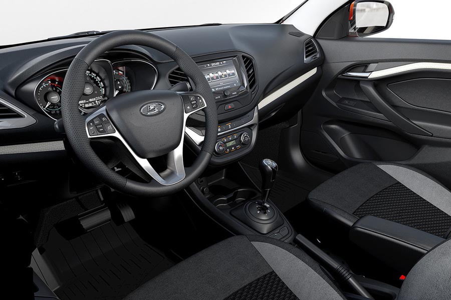 Εξωτερικά, το μήκους 4.410 χλστ., πλάτους 1.764 χλστ., ύψους 1.497 χλστ. και με μεταξόνιο 2.635 χλστ. αμάξωμά του παρουσιάζει μοντέρνα σχεδιαστικά στοιχεία και υιοθετεί την αισθητική του πρωτότυπου Lada Vesta. Σύγχρονη εικόνα διαθέτει και το εσωτερικό του με τους άνετους χώρους για επιβάτες και αποσκευές (480 λτ.). Για πρώτη φορά στην ιστορία της Lada, το Vesta εφοδιάζεται με ESC, σύστημα κλήσης έκτακτης ανάγκης, τιμόνι πολλαπλών ρυθμίσεων, κάμερα οπισθοπορείας, σύστημα πολυμέσων, ντουλαπάκι συνοδηγού με ψύξη και αυτόματο κλείδωμα των θυρών εν κινήσει. Επιπλέον, στον εξοπλισμό ασφαλείας περιλαμβάνονται αερόσακοι οδηγού – συνοδηγού και πλευρικοί.