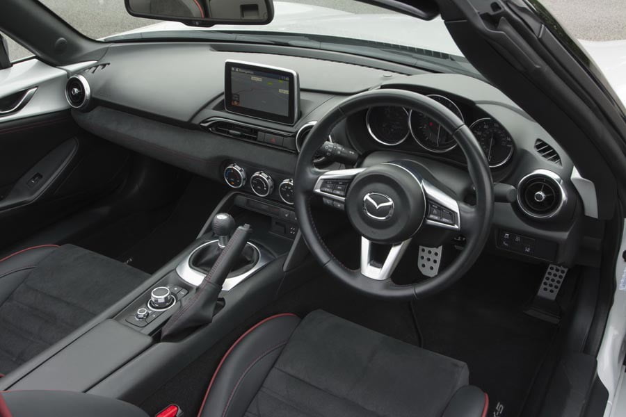 Στο εσωτερικό, το MX-5 Sport Recaro εφοδιάζεται με σπορ καθίσματα της Recaro επενδυμένα με δέρμα και αλκαντάρα, με μοναδικά πατάκια, αλουμινένια πεντάλ και με δερμάτινο τιμόνι, χειρόφρενο και επιλογέα ταχυτήτων με κόκκινες ραφές. Στον εξοπλισμό του περιλαμβάνονται ακόμα LED φώτα, κλιματισμός, πίσω αισθητήρες παρκαρίσματος, cruise control, ηχοσύστημα Bose, σύστημα infotainment με οθόνη αφής 7 ιντσών κ.λπ.