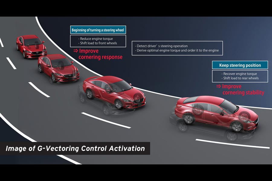 Για πρώτη φορά σε Mazda τοποθετείται το σύστημα δυναμικής συμπεριφοράς G-Vectoring Control (GVC), το οποίο προσφέρει καλύτερη οδική συμπεριφορά και άνεση. Το GVC μεταβάλλει τη ροπή του κινητήρα για να βελτιστοποιήσει τα φορτία σε κάθε τροχό, παρέχοντας έτσι πιο ακριβή χειρισμό μέσω του τιμονιού, καθώς και ομαλότερες κινήσεις του αυτοκινήτου κάτω από σχεδόν οποιεσδήποτε συνθήκες οδήγησης. Επιπλέον σε όλα τα μοντέλα με κινητήρες πετρελαίου έχουν μειωθεί οι κραδασμοί και ο θόρυβος.