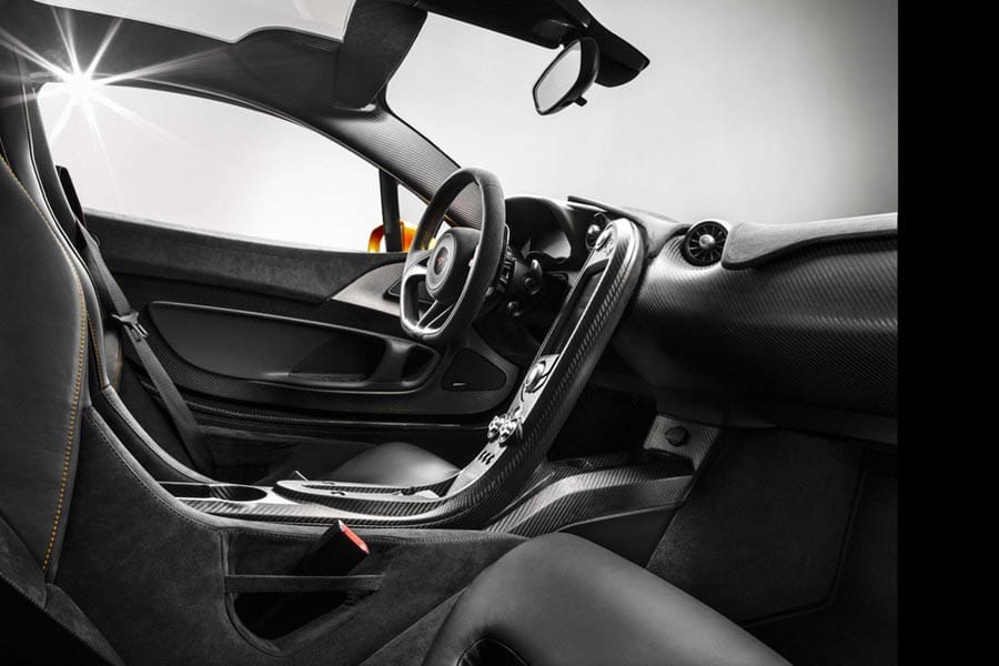 Μάλιστα στο εσωτερικό της McLaren P1 έχει αφαιρεθεί το άνω στρώμα ρητίνης από τις επενδύσεις ανθρακονήματος για να έχει πιο φυσική όψη αλλά και για την περαιτέρω μείωση του βάρους (λιγότερο κατά 1,5 κιλό). Επίσης έχουν αφαιρεθεί ηχομονωτικά υλικά (τα οποία όμως μπορούν να προστεθούν προαιρετικά) έτσι ώστε να προσφέρει όσο το δυνατό λιγότερο φιλτραρισμένο ήχο από τον κινητήρα στην καμπίνα, αλλά και για την εξοικονόμηση βάρους. Οι πλάτες των μπάκετ καθισμάτων έχουν σταθερή κλίση 28 μοιρών αλλά μπορούν να ρυθμιστούν και πιο… ξαπλωτά στις 32 μοίρες, ενώ η ρύθμιση του ύψους των καθισμάτων μπορεί να προσαρμοστεί με βάση το ύψος των επιβατών, μόνο όμως στον χώρο της McLaren.
