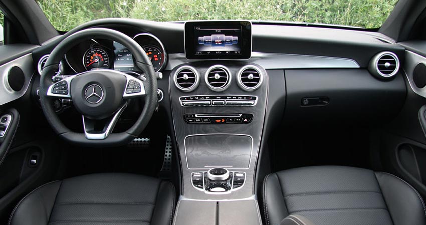 Το εσωτερικό της Mercedes C-Class Coupe δεν διαφέρει ουσιαστικά από τα υπόλοιπα μοντέλα της κλάσης της. Ακολουθεί την ίδια αρχιτεκτονική με αυτή του εσωτερικού που συναντάμε στο σεντάν μοντέλο, ενώ ακόμη και στις λεπτομέρειες είναι ίδια. Η ποιότητα είναι γνώριμη για μοντέλο της μάρκας, ενώ οι χώροι για τους πίσω επιβάτες, όπως είναι λογικό λόγω της κλίσης της οροφής, είναι ελαφρώς μειωμένοι. Η όλη σχεδιαστική προσέγγιση πάντως ταιριάζει γάντι στο ύφος του αμαξώματος, ενώ φυσικά δεν θα μπορούσαν να λείπουν στοιχεία όπως το σύστημα πληροφοριών και πολυμέσων με το τάμπλετ στο κέντρο της οθόνης. Φυσικά, η θέση οδήγησης είναι χαμηλή, όπως αρμόζει σε ένα γνήσιο κουπέ αυτοκίνητο, ενώ η ορατότητα είναι περιορισμένη ειδικά προς τα πίσω. Η εργονομία πάντως έχει τα θέματά της, καθώς ο χειρισμός του συστήματος πολυμέσων μάλλον θα κάνει πολλούς να διαβάσουν το εγχειρίδιο χρήσης, ενώ η τοποθέτηση του επιλογέα ταχυτήτων του αυτόματου κιβωτίου πίσω από το τιμόνι και όχι στην κεντρική κονσόλα, μπορεί να παραξενέψει κάποιους, συνηθίζεται όμως. Οι εμπρός επιβάτες δεν θα παραπονεθούν για την ευρυχωρία της καμπίνας, ενώ το πίσω κάθισμα είναι για δύο άτομα. Ο χώρος αποσκευών αντίστοιχα είναι κατά 80 λίτρα μικρότερος από της σεντάν C-Class, με συνολικό όγκο 400 λίτρων, ενώ οι χώροι για μικροαντικείμενα είναι ικανοποιητικοί για τους εμπρός.