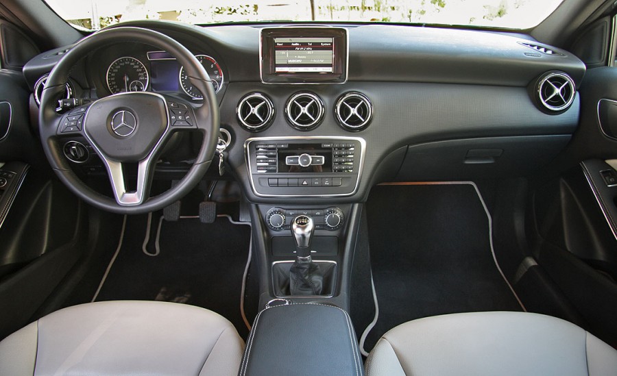 Η μικρότερη Mercedes δεν κάνει καμία παραχώρηση σε θέματα ποιότητας παραμένοντας καλοφτιαγμένη αλλά και πιο «νεανική» αισθητικά από τις υπόλοιπες προτάσεις της Mercedes κάτι που αντιμετωπίζεται θετικά για τα δεδομένα της κατηγορίας που ανήκει. Το ταμπλό βρίσκεται ψηλότερα από το συνηθισμένο και αυτό στην αρχή ξενίζει, ωστόσο προσθέτει πόντους στην συμπαγή και ξεχωριστή αίσθηση που δημιουργεί το εσωτερικό της. Η θέση οδήγησης είναι πάρα πολύ καλή αν και της λείπει η στήριξη στο σημείο των μηρών ενώ η εργονομία έχει και εκείνη τα «κουσούρια» της αφού για να πραγματοποιηθεί ακόμα και μια απλή διαδικασία απαιτείται χρόνος προσαρμογής. Ένα άλλο αρνητικό στο εσωτερικό της Mercedes A-Class είναι οι μικρές και άβολες θέσεις για μικροαντικείμενα. Σε επίπεδο χώρων μπορεί αυτή η Α-Class να υστερεί έναντι της προηγούμενης και να έχει χάσει σε πρακτικότητα, ωστόσο προσφέρει ικανοποιητικούς χώρους για 4 επιβάτες και τις αποσκευές τους, με τον όγκο του χώρου αποσκευών να ανέρχεται στα 341 λίτρα.
