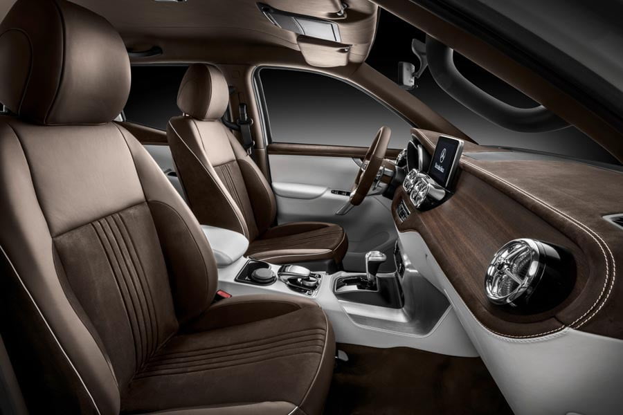 Διαφορετικές μεταξύ τους είναι οι δύο X-Class και στο εσωτερικό. Η stylish explorer είναι επενδυμένη με δέρμα σε γήινες αποχρώσεις, ξύλο και διακοσμητικά αλουμινίου, θυμίζοντας περισσότερο πολυτελές SUV παρά pickup. Η powerful adventurer διαθέτει δερμάτινες κιτρινόμαυρες επενδύσεις, διακοσμητικά ανθρακονήματος και ειδική θέση για πυροσβεστήρα στο ταμπλό. Φυσικά ο εξοπλισμός ανέσεων, ασφαλείας και συνδεσιμότητας δεν έχει να ζηλέψει τίποτα από ένα αμιγώς επιβατικό όχημα.