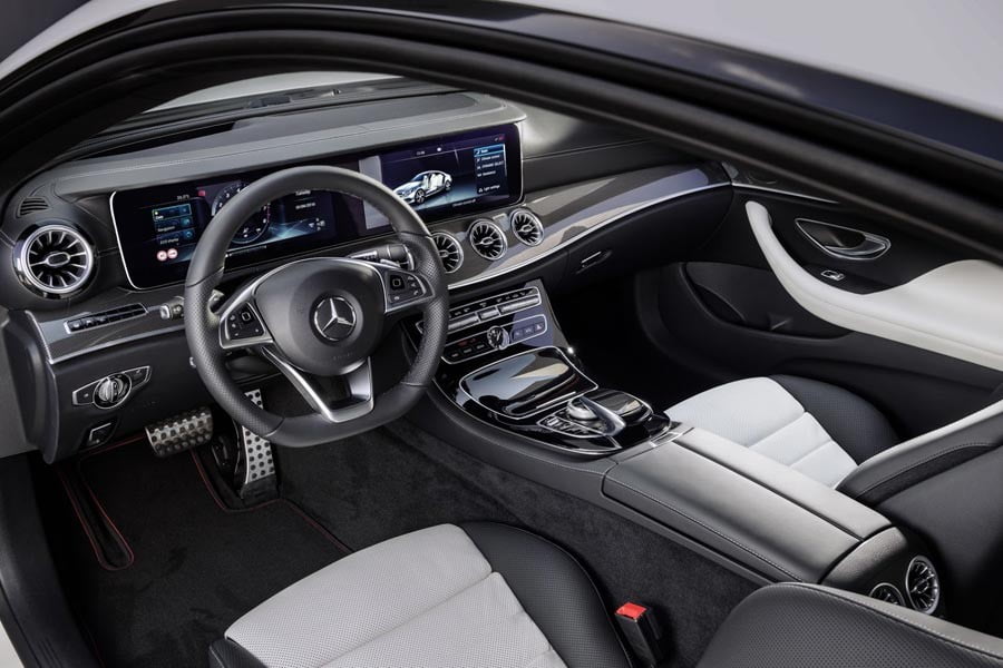 Το εσωτερικό της νέας E-Class Coupe συνδυάζει και αυτό την πολυτέλεια με τα σπορ χαρακτηριστικά, ενώ σε σχέση με τις υπόλοιπες εκδόσεις διαφέρουν σχεδιαστικά οι αεραγωγοί. Παράλληλα, συγκριτικά με την προγενέστερη E-Class Coupe, η νέα προσφέρει μεγαλύτερους χώρους για όλους τους επιβάτες (+74 χλστ. για τα πόδια πισω).