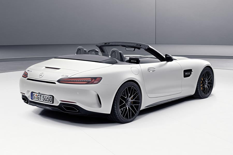 Ξεκινώντας με τη νέα Mercedes-AMG GT C Roadster Edition 50, η παραγωγή της θα γίνει σε μόνο 500 μονάδες και το αμάξωμα μπορεί να βαφτεί μόνο σε ένα ειδικό γκρι ή λευκό χρώμα (Designo Graphite Grey Magno και Designo Cashmere White Magno). Παράλληλα, υπάρχουν νέες επενδύσεις από χρώμιο, σφυρήλατες σκούρες ζάντες AMG, μαύρη και ασημί δερμάτινη επένδυση στο εσωτερικό, αλλά και AMG Performance τιμόνι.