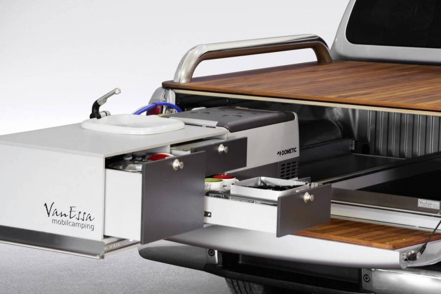 Εναλλακτικά, η Mercedes X-Class μπορεί να εξοπλιστεί με πτυσσόμενο εξοπλισμό πικνίκ από την εταιρία VanEssa. Το κιτ ζυγίζει περίπου 250 κιλά και περιλαμβάνει μια πληρέστατη κουζίνα, βρύση για πλύσιμο καθώς και χώρο για σκεύη μαγειρικής.