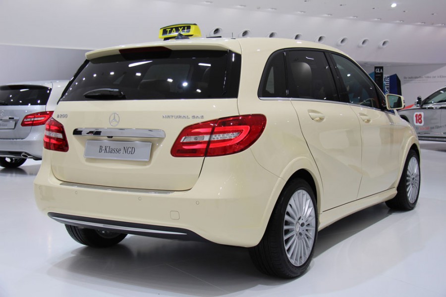 Μεταξύ των πολλών νέων μοντέλων που εκθέτει η Mercedes στο Σαλόνι Αυτοκινήτου της Φρανκφούρτης είναι και η B 200 Natural Gas Drive Taxi με φυσικό αέριο, η οποία θα ξεκινήσει να διατίθεται από το 2014. Πολλά είναι να στοιχεία εξοπλισμού που θα φέρει, όπως είναι -μεταξύ άλλων- το νέο, κατοχυρωμένο με δίπλωμα ευρεσιτεχνίας μονό μπράτσο οροφής που κρατάει το «καπέλο», ενώ παράλληλα εφοδιάζεται με κεραία ραδιοσυχνοτήτων με ενσωματωμένο δέκτη GPS, με hands-free και με το πακέτο Comfort Seat που περιλαμβάνει ενσωματωμένο πίσω κάθισμα για παιδιά.