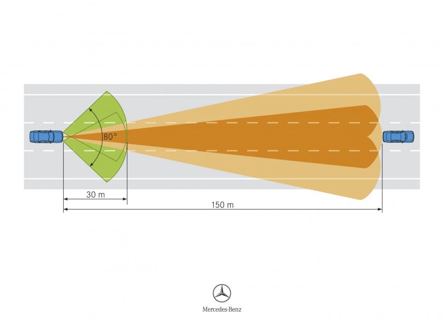 Η ναυαρχίδα της Mercedes, η S-Class, εκτός από την υψηλή πολυτέλεια και ανέσεις που προσφέρει, ξεχωρίζει σε κάθε της γενιά και για το κορυφαίο της τεχνολογικό υπόβαθρο. Η νέα S-Class που αναμένεται το 2013 θα εφοδιάζεται συνολικά με 25 εξωτερικούς αισθητήρες που θα ομαδοποιούνται σε αισθητήρες ορατού φωτός, υπέρυθρων ακτινών και υπερήχων με εμβέλεια έως 500 μέτρα και ακτίνα 360 μοιρών. Ο πιο πρωτοποριακός αισθητήρας, ο οποίος θα είναι τοποθετημένος εμπρός από τον εσωτερικό καθρέφτη θα δίνει εικόνα στον οδηγό για το τι συμβαίνει μπροστά του στα 50 μέτρα και σε γωνία 45 μοιρών.
