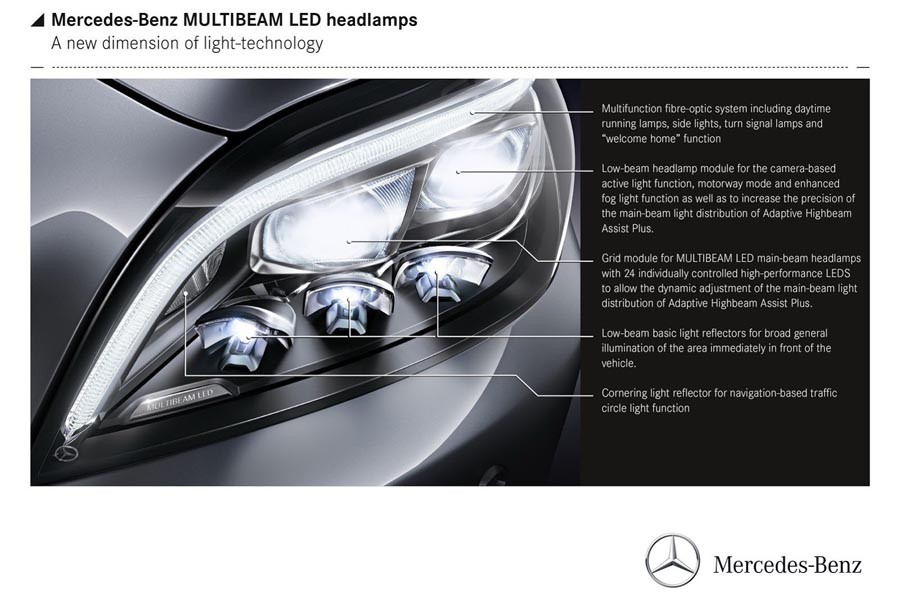 Μια πρώτη εικόνα για τη νέα μεγάλη 4θυρη Coupe αλλά και για την Shooting Brake Mercedes CLS αποκαλύπτει η γερμανική φίρμα, μέσω των πρωτοποριακών εμπρός φωτιστικών της σωμάτων. Τα MULTIBEAM LED φώτα παρουσιάζονται για πρώτη φορά και στο καθένα φωτιστικό σώμα υπάρχουν 24 αυτόνομα LED υψηλής απόδοσης, τα οποία συνδέονται με μια κάμερα τοποθετημένη πίσω από το παρμπρίζ. Μέσω αυτής λαμβάνονται πληροφορίες για τον κατάλληλο φωτισμό, ενώ τέσσερις μονάδες ελέγχου υπολογίζουν το ιδανικό φως 100 φορές το δευτερόλεπτο.