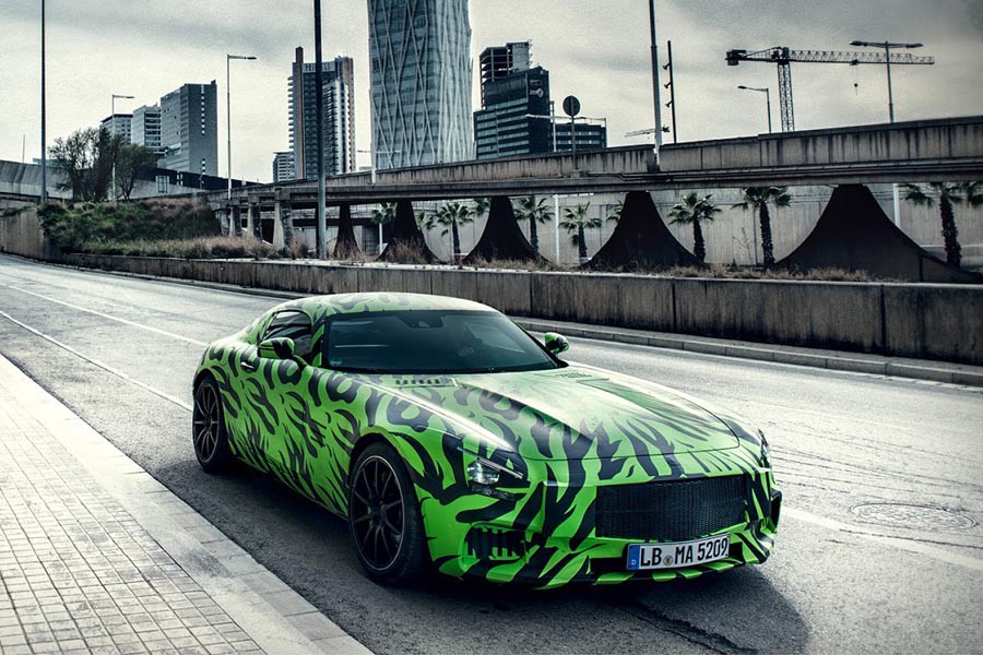 Το νέο σπορ και άκρως δυναμικό μοντέλο Mercedes AMG GT θα αποκαλυφθεί στις 9 Σεπτεμβρίου, ενώ την πρώτη του δημόσια εμφάνιση στο κοινό θα την κάνει στις 4 Οκτωβρίου στο Σαλόνι Αυτοκινήτου του Παρισιού. Μέχρι στιγμής η γερμανική φίρμα έχει παρουσιάσει το εσωτερικό του αυτοκινήτου, το οποίο συνδυάζει σε ιδανική ισορροπία την πολυτέλεια με το δυναμισμό και τον κινητήρα. Ο τελευταίος είναι V8 4.0 λτ. twin-turbo, με απόδοση 510 ίππων και 650 Nm ροπής, με πίεση του turbo στα 1.2 bar και βάρος (δίχως υγρά) στα 209 κιλά. Για την εξωτερική εμφάνιση με το πολύ μακρύ εμπρός καπό και τον κοντό πίσω πρόβολο μπορούμε να πάρουμε μια πρώτη γεύση από τις καμουφλαρισμένες φωτογραφίες. Εν αναμονή λοιπόν με μεγάλο ενδιαφέρον.