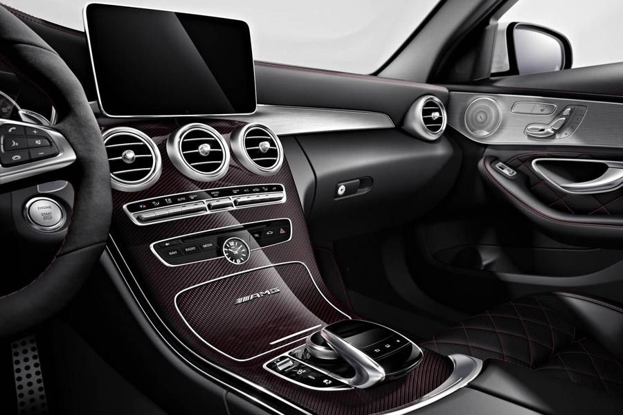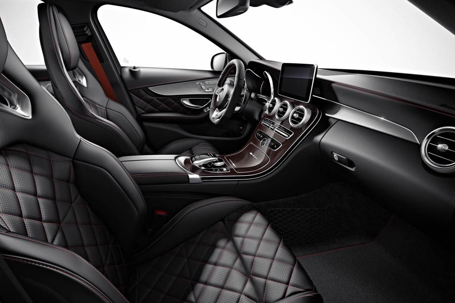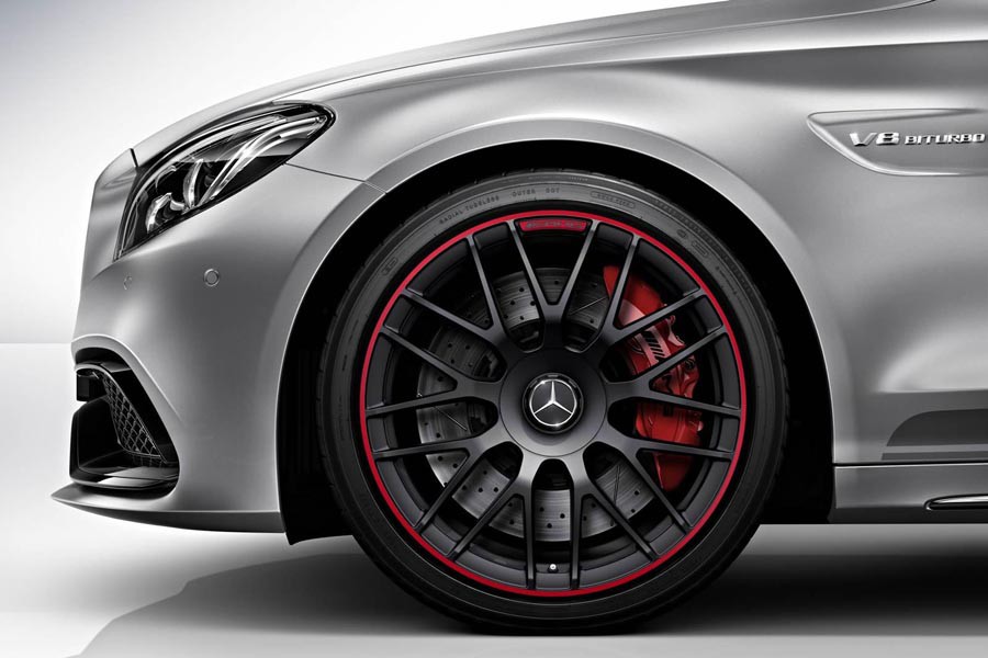 Η C 63 Edition 1 θα είναι διαθέσιμη και στο μοναδικό χρώμα iridium silver magno, εφοδιάζεται με σφυρήλατες δίχρωμες ζάντες (μαύρο ματ με κόκκινο) διαστάσεων 8.5×19 και 9.5×19 με ελαστικά 245/35 εμπρός και 265/35 πίσω. Στο βασικό εξοπλισμό περιλαμβάνεται και το Night package, το οποίο περιλαμβάνει μαύρους γυαλιστερούς αεραγωγούς εμπρός, καθρέπτες, πλαίσια των παραθύρων, μάσκα και πίσω φιμέ παράθυρα. Επίσης, η Mercedes-AMG C 63 Edition 1 ξεχωρίζει από τις κόκκινες διακριτικές λωρίδες στη μάσκα και στους καθρέπτες, καθώς και από τις –αμφιβόλου αισθητικής- γκρι αυτοκόλλητες ταινίες στα πλαϊνά.