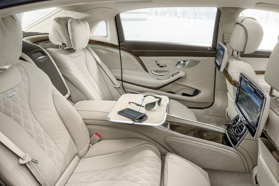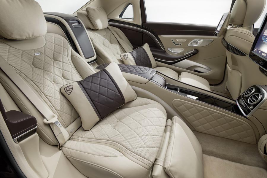 Η νέα Mercedes-Maybach S-Class κατασκευάστηκε για να παρέχει τις μέγιστες δυνατές ανέσεις στους δύο πίσω φιλοξενούμενους, οι οποίοι απολαμβάνουν χώρους και πολυτέλεια αντίστοιχες με πρώτης θέσης αεροπλάνου. Στα δύο πίσω πλήρως ανεξάρτητα καθίσματα – πολυθρόνες, η πλάτη ρυθμίζεται σε γωνία έως 43,5 μοιρών, τα προσκέφαλα δέχονται επιπλέον μαξιλάρι, στο κάτω μέρος υπάρξει εξτρά υποπόδιο, ενώ υπάρχουν πολλές ακόμα ηλεκτρικές ρυθμίσεις μέχρι και λειτουργία μασάζ. Επιπλέον εξοπλίζεται με αναδιπλούμενα τραπεζάκια, με θερμαινόμενη ή ψυχόμενη κονσόλα, με ειδικό σύστημα ιονισμού του αέρα της καμπίνας κ.λπ.