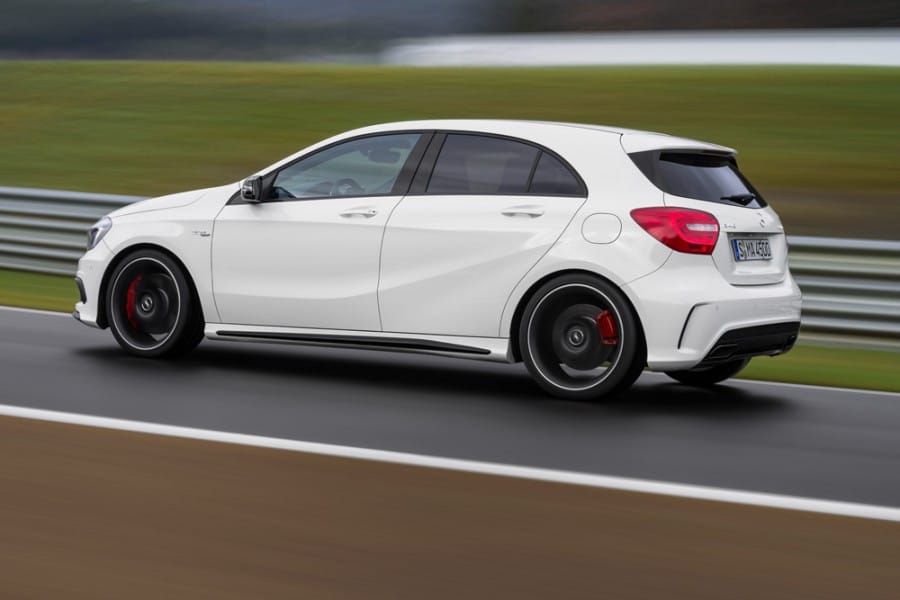 Η Mercedes δημοσιεύει επισήμως πλήρη στοιχεία για την κορυφαία έκδοση της A-Class, την Α 45 AMG. Ξεκινώντας από τον 2λιτρο υπερτροφοδοτούμενο κινητήρα, αποδίδει 360 ίππους στις 6.000 σ.α.λ. και 450 Nm ροπής στις 2.250-5.000 σ.α.λ., επιταχύνει το αυτοκίνητο από τα 0-100 χλμ./ώρα σε 4,6 δευτερόλεπτα, η τελική ταχύτητα περιορίζεται ηλεκτρονικά στα 250 χλμ./ώρα, ενώ η κατανάλωση και οι εκπομπές CO2 ανέρχονται στα 6,9-7,1 λτ./100 χλμ. και στα 161-165 γρ./χλμ. αντίστοιχα. Επίσης ο εν λόγω Euro 6, 4κύλινδρος υπερτροφοδοτούμενος (twin-scroll) κινητήρας ζυγίζει 148 κιλά, η μέγιστη πίεση του turbo φτάνει τα 1,8 bar και η αναλογία ίππων ανά 1.0 λτ. φτάνει τους 180 ίππους!