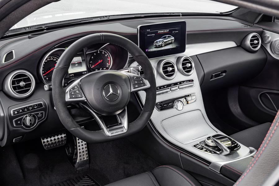 Η σπορ ανάρτηση AMG RIDE CONTROL ρυθμίζεται σε τρία επίπεδα (Comfort, Sport και Sport Plus) μέσω του μπουτόν που υπάρχει στην κεντρική κονσόλα. Επιπλέον, μέσω του χειριστηρίου AMG DYNAMIC SELECT στην κονσόλα, ο οδηγός μπορεί να επιλέξει τις επιλογές μετάδοσης Eco, Comfort, Sport, Sport Plus και Individual, οι οποίες μεταβάλλουν την απόκριση του κινητήρα, της μετάδοσης, την ρύθμιση της ανάρτησης και του τιμονιού.