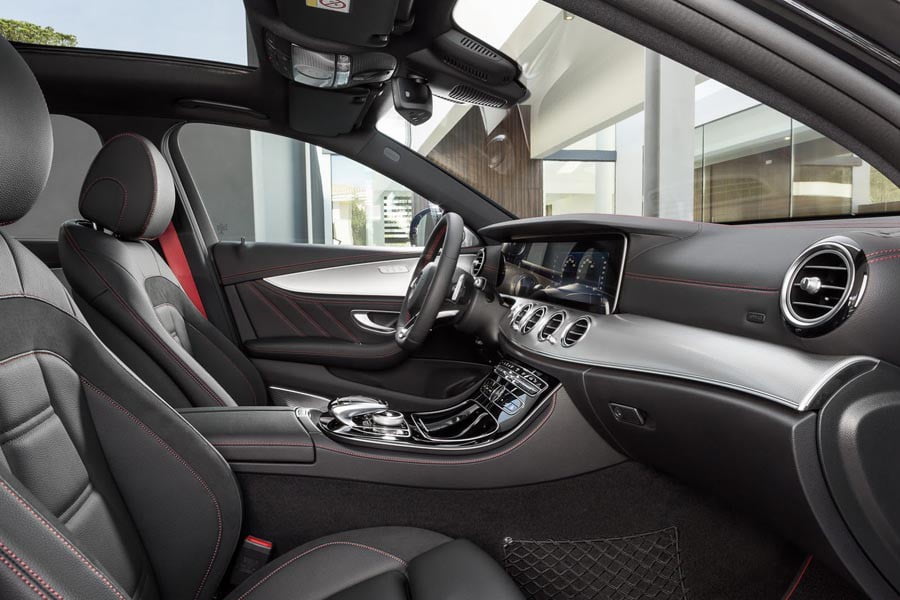 Εξωτερικά, η Mercedes-AMG E 43 4MATIC ξεχωρίζει από τη μάσκα με το πιο πολυτελές φινίρισμα, τον πιο δυναμικού σχεδιασμού προφυλακτήρα, τις 19 ιντσών AMG ζάντες αλουμινίου (προαιρετικά 20 ιντσών), το διαχύτη στον πίσω προφυλακτήρα και την αεροτομή στο πίσω καπό. Στο εσωτερικό υπάρχουν πολλές μοναδικές λεπτομέρειες, όπως είναι οι επενδύσεις από δέρμα / ύφασμα ή προαιρετικά με δέρμα νάππα, οι κόκκινες ραφές, η μαύρη οροφή και οι κόκκινες ζώνες ασφαλείας.