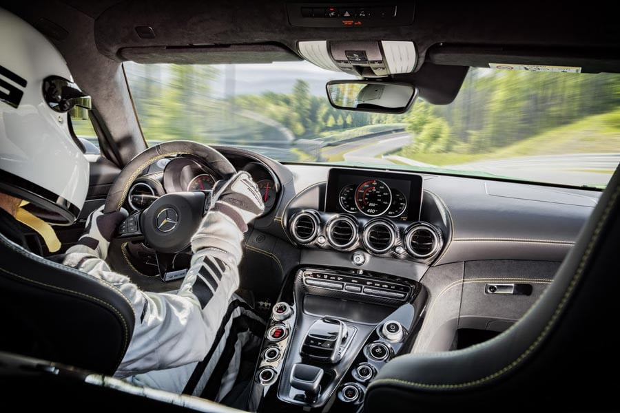 Επίσης, η Mercedes-AMG GT R εφοδιάζεται με νέο σύστημα εξάτμισης, το οποίο εκτός από το ότι προσφέρει πιο αγωνιστικό ήχο, είναι και ελαφρύτερο κατά 5,9 κιλά από εκείνο της GT S. Για την επαφή με το οδόστρωμα φροντίζουν οι 19 ιντσών ζάντες εμπρός με ελαστικά 275/35 και οι 20 ιντσών πίσω με ελαστικά 325/30.
