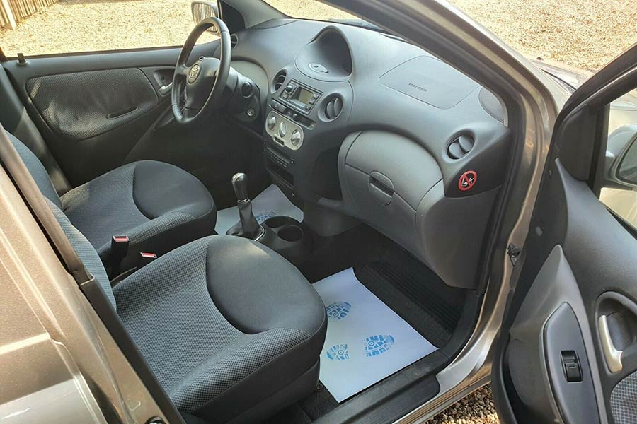 Πρόκειται για την πλούσια έκδοση του μοντέλου, την Sol με τον 1.300άρη κινητήρα. Στον εξοπλισμό του περιλαμβάνει ABS, 4 αερόσακους, ηλεκτρικά παράθυρα εμπρός, ηλεκτρικούς καθρέπτες, air condition, ηχοσύστημα κ.λπ. Το συγκεκριμένο μοιάζει να είναι πολύ καλά συντηρημένο και στο εσωτερικό του, αφού τα χειριστήρια και καθίσματα δεν έχουν φθορές. Σίγουρα όσοι είχαν το πρώτο Yaris θα το θυμούνται για τις πολλές θήκες, ντουλαπάκια, το συρόμενο πίσω κάθισμα και τον τρισδιάστατο ψηφιακό πίνακα οργάνων.