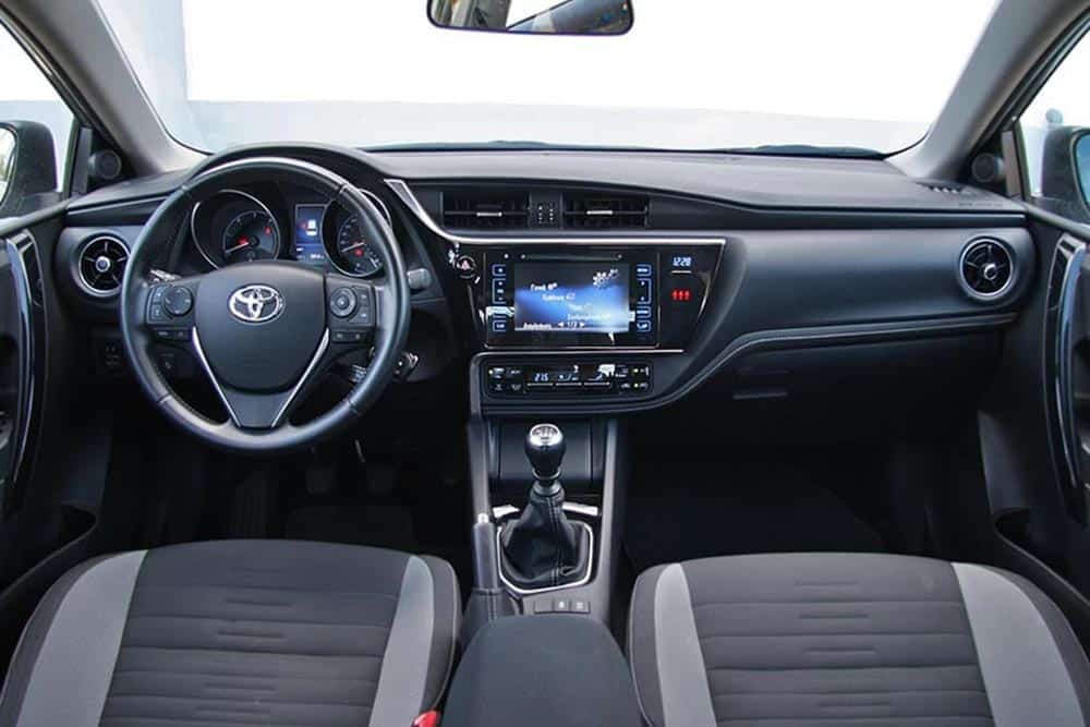 Αναφορικά με το εσωτερικό του δεύτερης γενιάς Auris, σε ένα μεγάλο μέρος του ταμπλό υπάρχουν μαλακά πλαστικά καλής ποιότητας και με καλή συναρμογή. Στο ανανεωμένο μοντέλο οι αλλαγές εστιάζονταν στην κεντρική κονσόλα, στον πίνακα οργάνων, στα χειριστήρια του κλιματισμού και στις επενδύσεις. Όσον αφορά τους χώρους των επιβατών, στο πίσω κάθισμα υπάρχει αρκετό πλάτος, ύψος και αέρας για τα πόδια, ενώ το επίπεδο δάπεδο διευκολύνει το μεσαίο φιλοξενούμενο. Ο χώρος αποσκευών είναι ρηχός και χωρητικότητα 360 λίτρα, όσο είναι και στο υπάρχον, νέο Corolla.