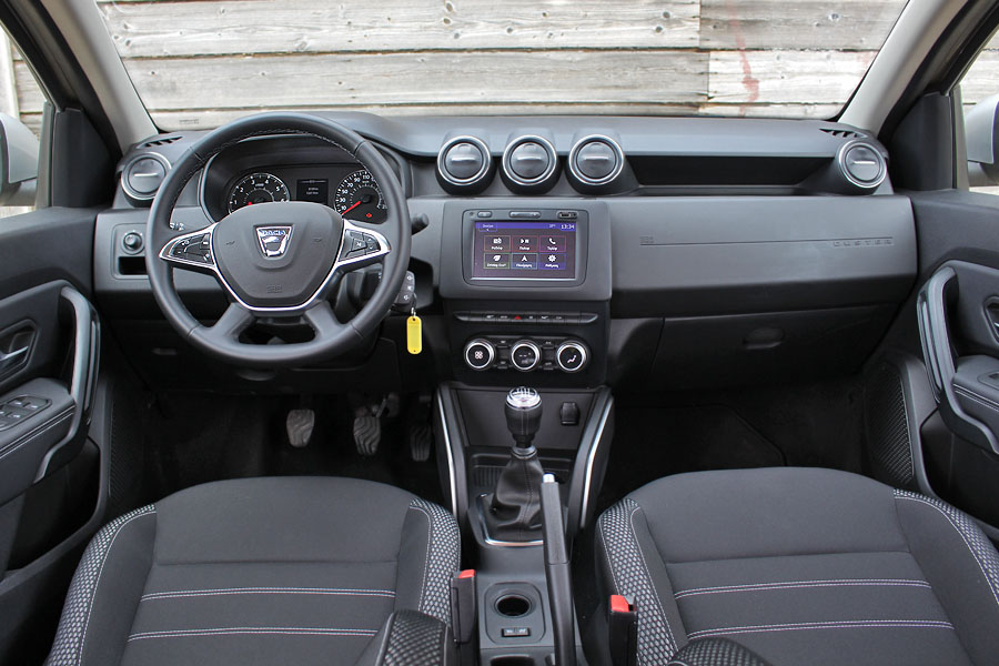 Το πρώτο στοιχείο που κερδίζει τις εντυπώσεις στο εσωτερικό του Dacia Duster, είναι οι χώροι του. Στο πίσω κάθισμα θα κάτσουν χωρίς καμία παραχώρηση δύο άτομα, ενώ ένας ακόμα δεν θα στριμωχτεί. Για τις αποσκευές υπάρχουν 445 λίτρα το 2WD και 411 λίτρα στο 4WD. Όσον αφορά την κατασκευή του, τα σκληρά πλαστικά σίγουρα δεν ενθουσιάζουν με την απτή τους ποιότητα, ωστόσο είναι καλομονταρισμένα. Ο οδηγός κάθεται σωστά και αναπαυτικά στο μαλακό κάθισμα, δεν θα αντιμετωπίσει κάποιο πρόβλημα με την εργονομία και έχει στη διάθεσή του διάφορες θήκες για μικροαντικείμενα.
